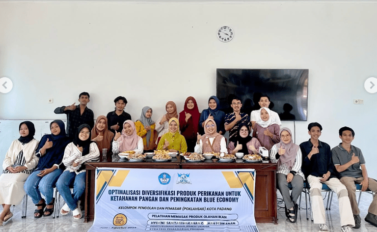 Padang, 6 Juli 2024 – POKLAHSAR BALI, Kelurahan Ulak Karang Utara, menjadi salah satu peserta dalam kegiatan Cooking Class dengan tema “Optimalisasi Diversifikasi Produk Perikanan untuk Ketahanan Pangan dan Peningkatan Blue Economy”. Kegiatan ini dilaksanakan di Gedung Tata Boga BLK Vokasi Sungai Balang, Kota Padang, dan diikuti oleh 20 peserta yang terdiri dari anggota POKLAHSAR BALI, dosen Universitas Nahdlatul Ulama (UNU) Sumbar, serta mahasiswa Program Studi Manajemen Sumberdaya Perairan (MSP).